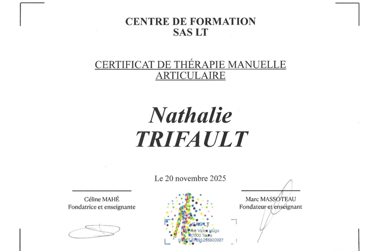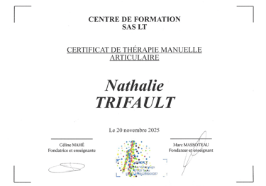 Certifiée en Thérapie manuelle articulaire et émotionnelle.